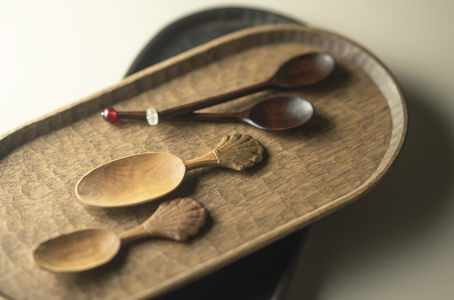 木の匙を削り続けて31年。匙屋の屋号で、漆塗の口当たりやわらかく、削り跡も美しい匙を制作しています。