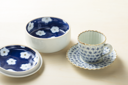 細やかな花弁の絵付、そしておおらかな絵付とどちらも魅力的。京都の藤塚光男さんのところで長く修業された廣政さんの器は藤塚さん譲りの、日常使いに欠かせない使いやすいものばかり。